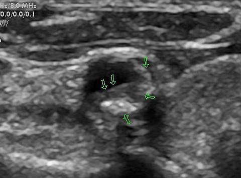 Auf den Bildern sehen Sie einerseits eine glatte Halsschlagader, die Sie schon als solche