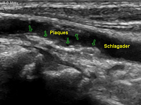 erkennen können, weiter eine Halsschlagader mit beginnender Ablagerung (Plaques) und